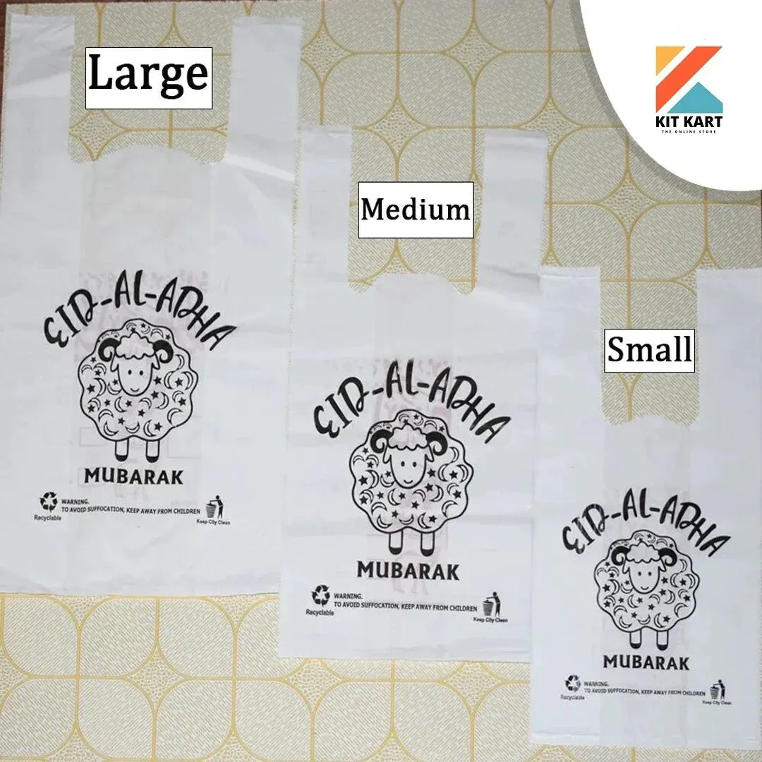 Product details of High Quality EID Mubarak Shopping Bags [Small Size: 10”/14”] [Medium Size: 12”/16”] [Large Size: 14”/18”] (Almost 80 to 90 pcs per Kg)